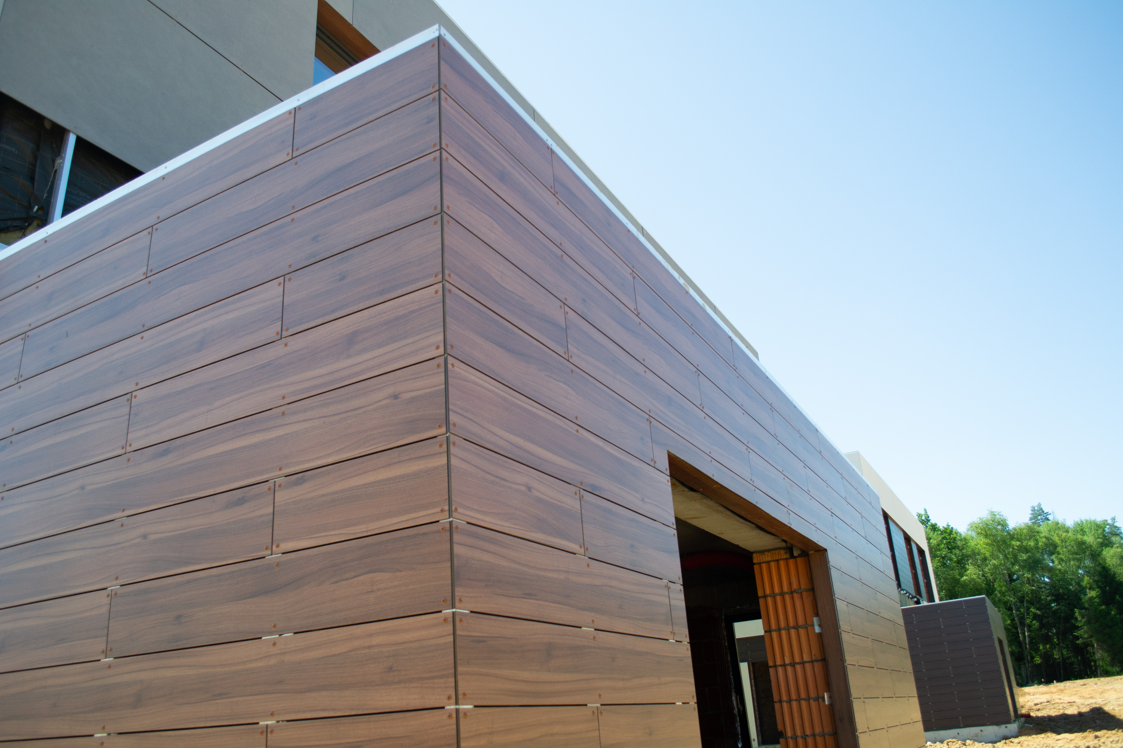 - Уход за декоративным слоем: фасадный HPL устойчив к ультрафиолету — цвет сохраняется десятилетиями. Достаточно удалять загрязнения и следить за герметизацией примыканий.
